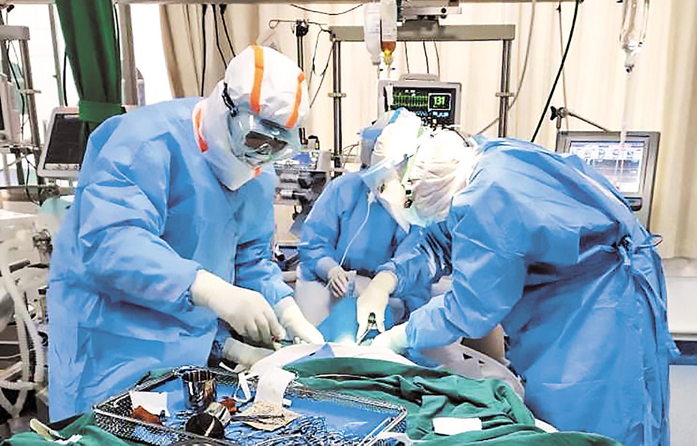手术结束不久,患者的血氧饱和度均慢慢上升,各项生命体征逐渐趋于稳定。“一次性完成3例气管切开手术,对于全院来说是第一次。何况新冠肺炎是烈性传染病,病人气管切开后,气道喷射的高浓度病毒会形成气溶胶,感染风险比插管还高。”被院内誉为“一把刀”的喻军华说,到临床一线主刀可以给全院医护人员信心和力量。