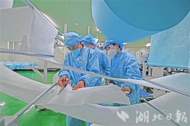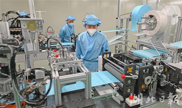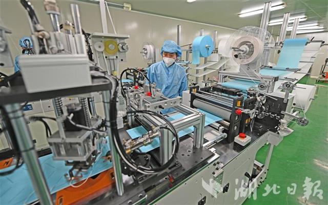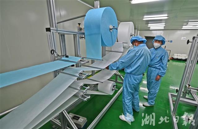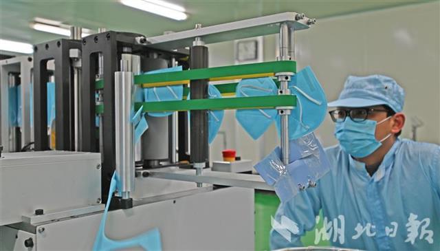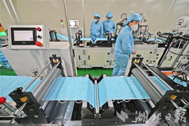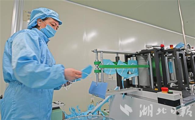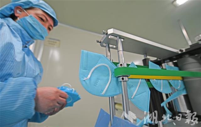 为确保公司顺利投产,宜昌猇亭区市场监督管理局、科经局、发改局等部门上门指导,短短几天就完成了企业备案、变更经营范围、设备进场等工作,为企业投产争取了宝贵时间。据了解,3月中旬,公司在取得相关资质后将进一步升级,生产平面型一次性医用防护口罩。后期两类产品设备将达19台,待全部投产后,KN95防护口罩日产量将达100万只,医用防护口罩日产量达30万只。(湖北日报全媒记者 刘曙松 通讯员 姜宇 雪姣 摄)