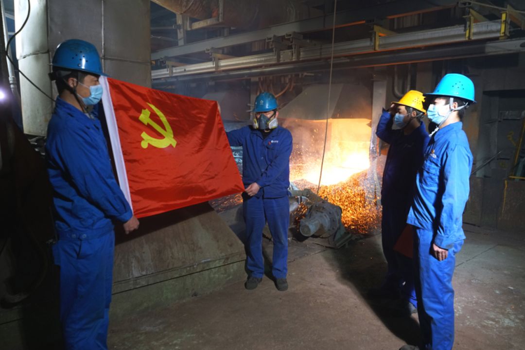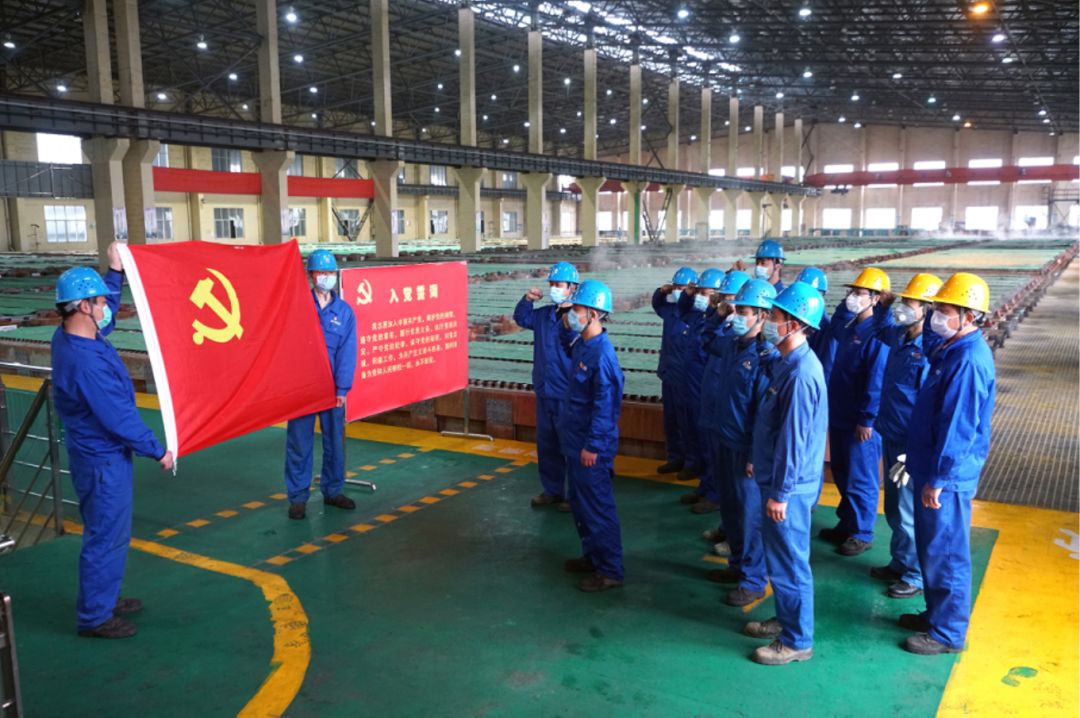 3月6日,鲜红的党旗在中国有色集团出资企业大冶有色金属集团控股有限公司(简称:中色大冶)抗疫保产一线的三个阵地相继展开,冶炼厂熔炼车间精矿库行车工苏岩、电解车间大板槽面班副班长刘术、矿业分公司铜绿山矿生产管理科库工黄锋三人,分别在冶炼炉台、电解槽面、华盛小区门口举起右手,面对党旗,庄严宣誓加入中国共产党。虽然口罩遮住了他们的面容,但是却挡不住他们坚定的眼神,“我志愿加入中国共产党!”激昂铿锵的誓言回荡在抗疫保产前线,他们的故事也在铜都大地上流传……..