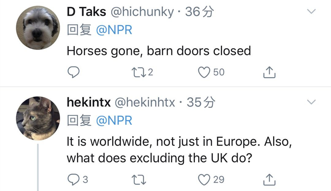 美国民众:“病毒是全球性的,不是只有欧洲有啊!”“有欧洲,为什么没有英国?”“欧洲人转道英国再进入美国不行吗?”“英国的希斯罗机场难道不是世界上最繁忙的机场之一?”