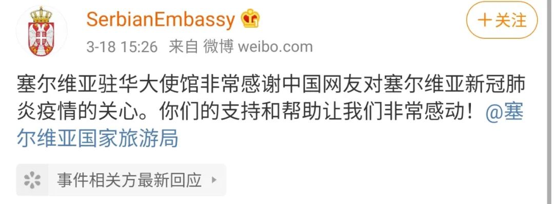 随后 #塞尔维亚驻华大使馆开微博#
