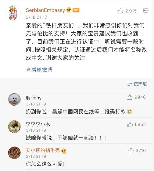 开通了官方微博@SerbianEmbassy,