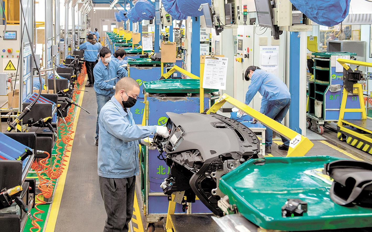 3月15日,延锋汽车饰件系统武汉有限公司生产区域,工作人员正在忙碌。据介绍,3月14日该公司收到准许复工生产批复,第二天就正式复产。目前,公司南、北线生产车间已全部复工。