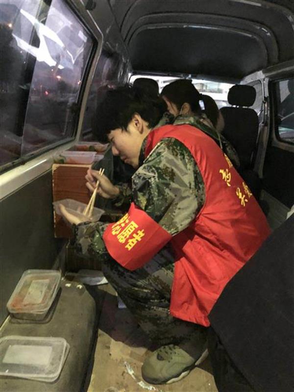 谈及报名志愿者,徐栋表示,“我身体很健康,看到有招募志愿者的消息后就报名了,家人也很支持。”与其他志愿者不同,每天,徐栋穿上大学军训时的迷彩服,戴上志愿者红袖章,做好防护出门。