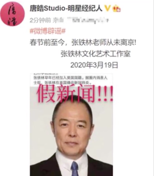 网易娱乐专稿3月20日报道 20日早,有网友爆料张铁林在英国确诊了新冠肺炎,打算回国接受治疗。随后,张铁林经纪人出面辟谣,他表示,从春节到现在,张铁林老师都一直待在北京。但该微博发出不久后就被删除,引起网友热议。