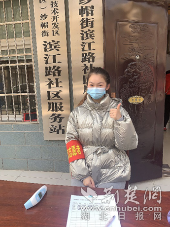 荆楚网客户端-荆楚网消息(记者陈泉 通讯员陈凡、朱伊雯)记者3月21日获悉,家住武汉开发区(汉南区)滨江路社区的朱伊雯,疫情发生后,她主动申请参加社区防疫志愿服务。身兼“排查员”“疏导员”“快递员”“宣传员”的她说:“非典时,是你们在保护我们90后。现在,换我们90后保护你们!”