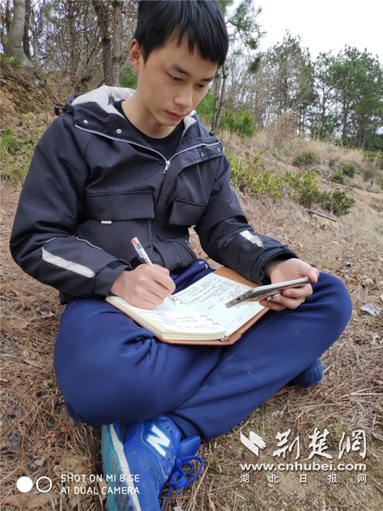 “接到学院反馈后,我特地在花名册上将徐松盛同学作了标记,没想到,他不仅按时上课,而且作业还完成得非常好。”武汉生物工程学院《财务会计学》任课教师刘远红赞扬道。但刘远红等老师并不知道,徐松盛为了跟上网课学习进度每天都要爬一座山。从2月17日我校“网上开学”至今,每逢有课,徐松盛就带着书本爬上家后面那座山的山顶,提前测试好网络信号。没有课桌,他就拿腿当课桌。有时候受信号影响,他仍不能参加直播答疑课,他就在课后找同学借来笔记,找老师借来教学PPT自学。在家里做作业时,若需要网络,徐松盛就得再次跑到后山顶去找信号……虽然学习条件艰苦,但他依然坚持学习,准时上交高质量的作业,用两条腿和大量时间“拼”出了良好学习成果。