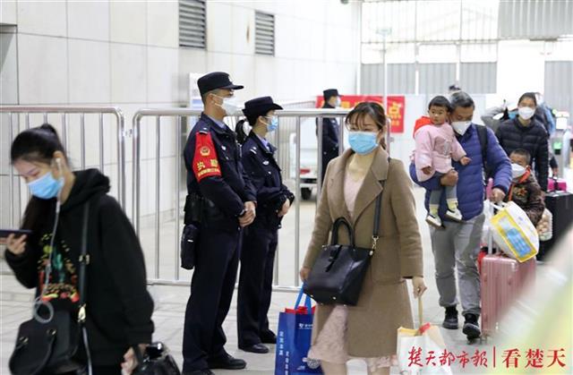 为确保旅客平安有序出行,麻城铁路警方加强部署,联合客运及医务人员对复工旅客逐一检测体温、查验健康码。同时采取分车厢、错位坐席等方式引导旅客有序乘车。