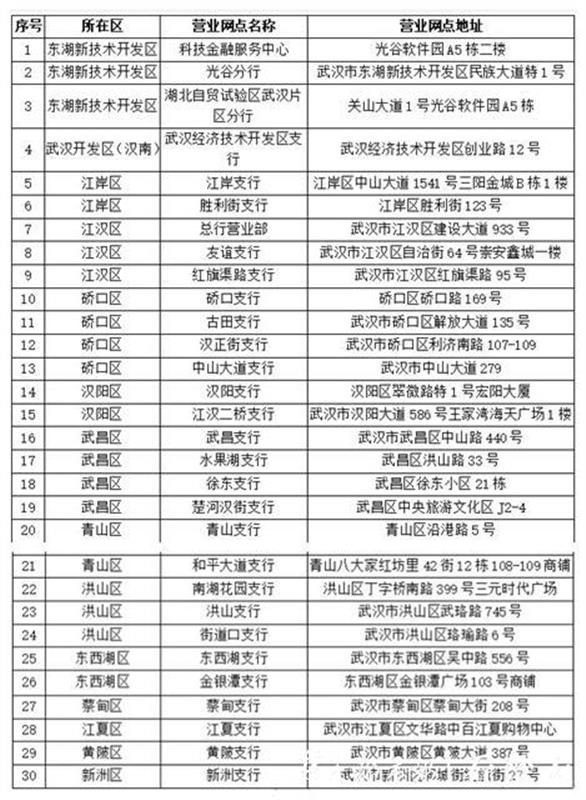 楚天都市报3月27日讯(记者陈红 通讯员秦松)在工商银行、农业银行、中国银行、建设银行的首批数十家银行网点复工后,今日再传消息:3月28日,汉口银行武汉地区30家网点“重启”,每日营业时间为9:30至16:00。