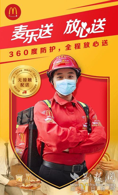 荆楚网客户端-荆楚网消息(通讯员周苗苗)麦当劳积极响应湖北复工复产的政策,3月30日起,湖北省包括武汉市内的近百家麦当劳餐厅恢复营业,在安全服务的前提下,开启“无接触配送”服务,“无接触到店取餐”也将陆续开启。