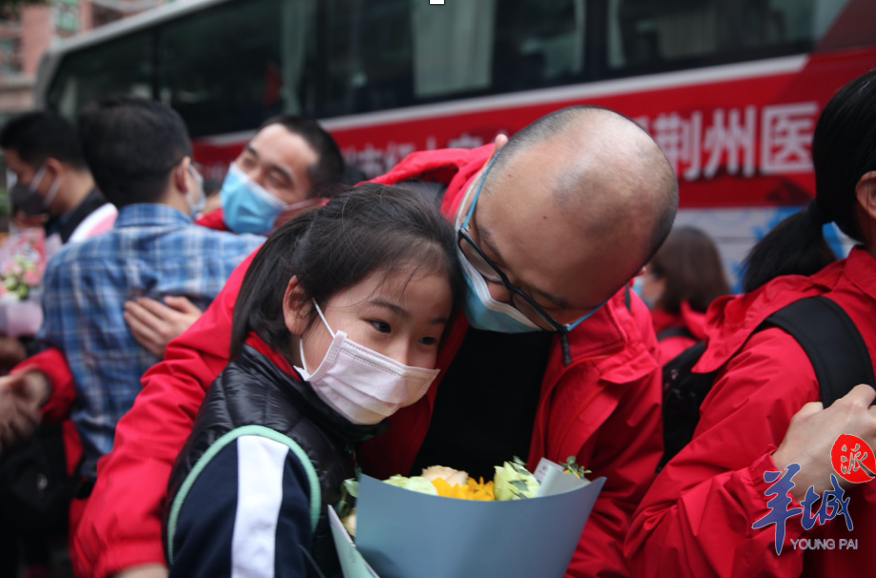 “欢迎抗疫英雄!”“欢迎回家!”下午,广大医院职工早早等候在路旁,呼喊着热烈的口号列队欢迎。一张张熟悉的面孔终于平安回到我们的身边!抗疫英雄们与久违的家属和同事们紧紧拥抱,彼此一个多月的牵挂终于落地。