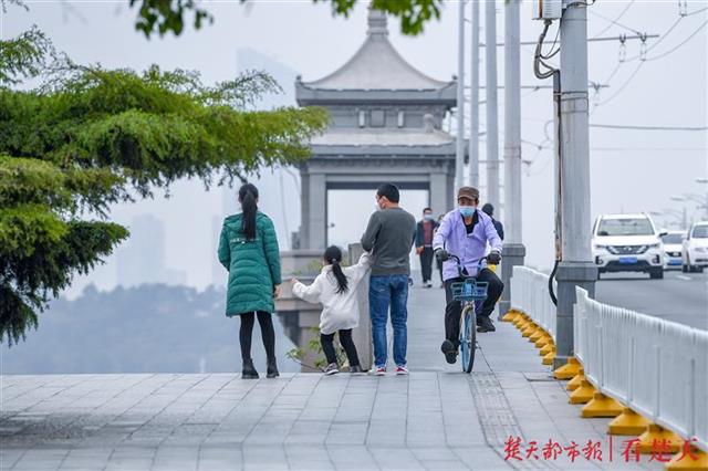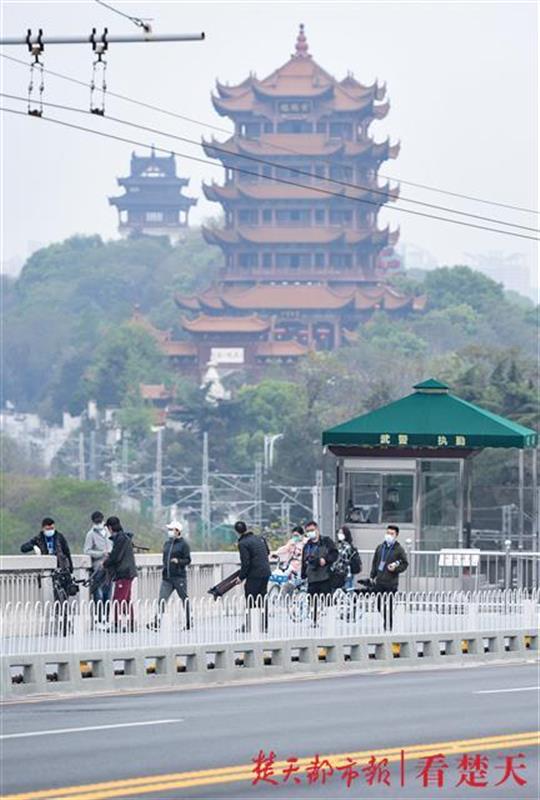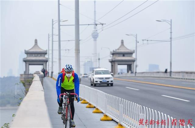 4月5日,武汉“重启”倒计时第三天,天气晴好,且是星期天。记者在武汉长江大桥看到,桥面上来往的车辆、行人多了起来,骑自行车与电动车过江的市民也有不少,“万里长江第一桥”正逐渐恢复往日的生机。
