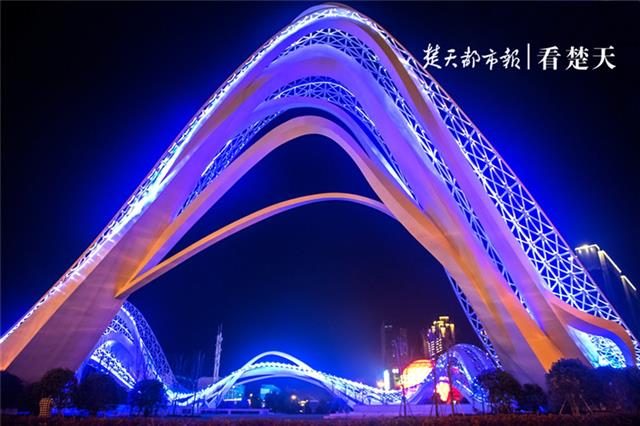 楚天都市报4月6日讯(记者刘中灿)4月6日晚,武汉光谷广场综合体格外璀灿夺目,“星河”雕塑在霓虹灯的照耀下婀娜多姿,呈现出优美姿态。