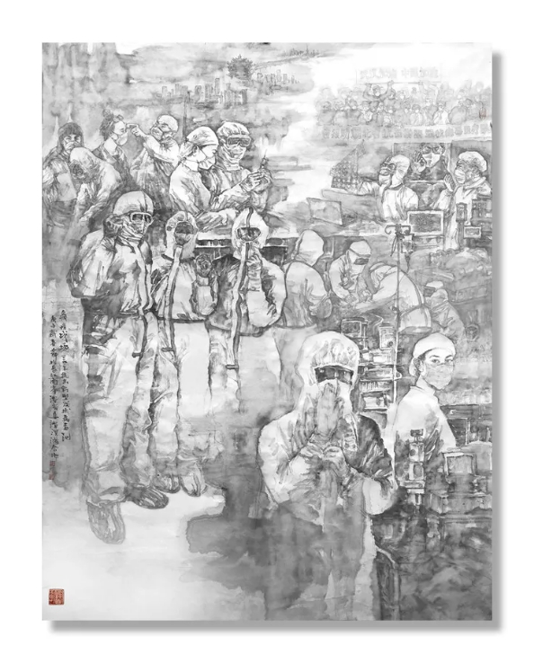 《疫情 战场》中国画谭崇正 谭溟鸿