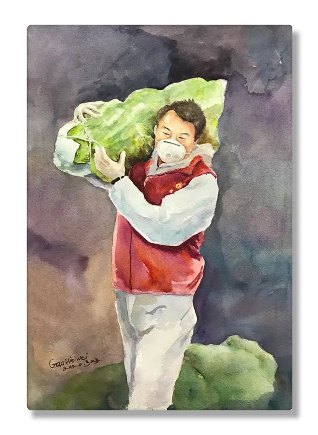 水彩画《70志愿者》 高伟伟