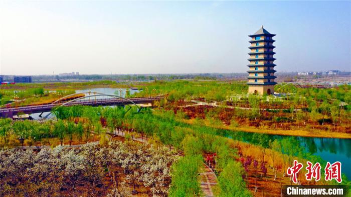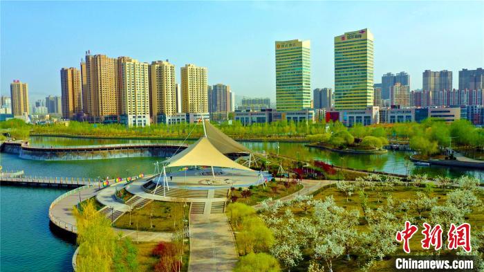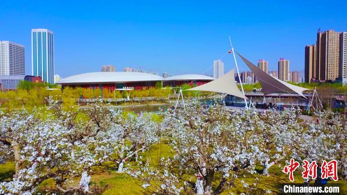 国家4A级旅游景区天鹅河旁,梨花朵朵开,与碧水蓝天相呼应,构成了一幅清新美丽的城市风景图。 李洁 摄