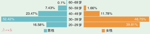 据不完全统计,广东援鄂医疗队中,女性约6成。在全体女性队员中,20-39岁的女性占比86.56%。在全体男性队员中,30-39岁男性最多,占52.42%。医疗队队员主体为“80后”“90后”。