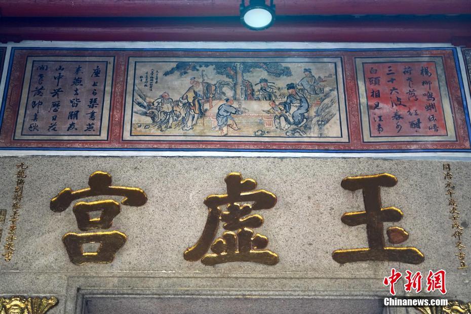 香港特区政府近日宣布,根据《古物及古迹条例》,将湾仔玉虚宫列为法定古迹。湾仔玉虚宫又名湾仔北帝庙,为供奉道教神仙北帝而建,是湾仔早期发展的重要历史地标。正门麻石门额的“玉虚宫”三字,为当时驻守香港九龙寨城的大鹏协副将张玉堂所题。 中新社记者 张炜 摄