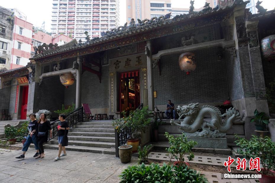 香港特区政府近日宣布,根据《古物及古迹条例》,将湾仔玉虚宫列为法定古迹。湾仔玉虚宫又名湾仔北帝庙,为供奉道教神仙北帝而建,是湾仔早期发展的重要历史地标。 中新社记者 张炜 摄