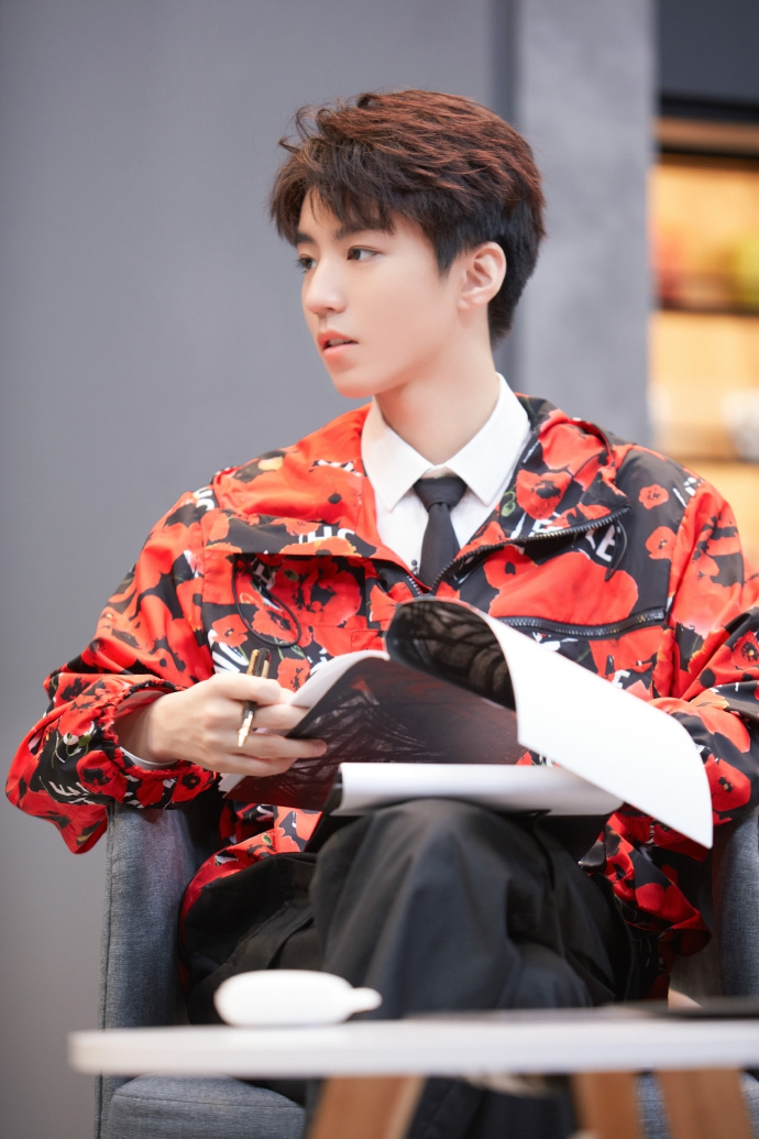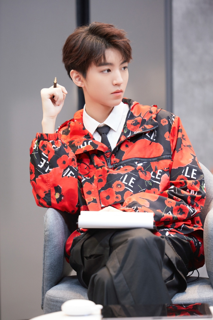 王俊凯穿红色印花外套青春活力 少年感十足