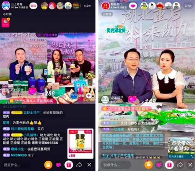 恩施州副州长李岩推荐恩施玉露茶、藤茶、手撕黑猪肉等产品,荆州市副市长邓应军在直播间唱起了《洪湖水浪打浪》等。