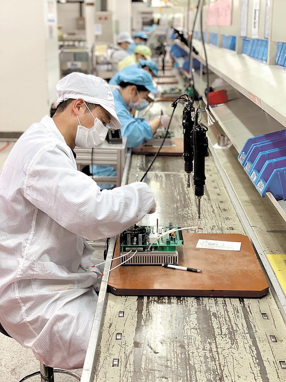 华中数控的数控系统生产车间内,工作人员正在进行伺服驱动器装配。