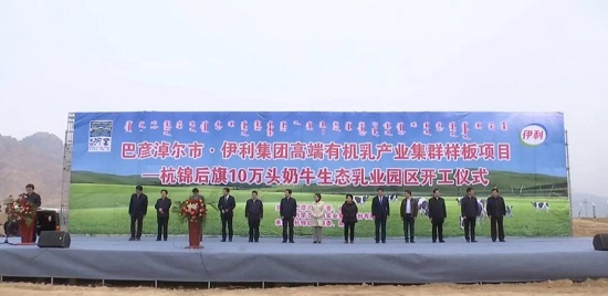 4月18日,巴彦淖尔市•伊利集团高端有机乳产业集群样板项目——杭锦后旗10万头奶牛生态乳业园区举行开工仪式。