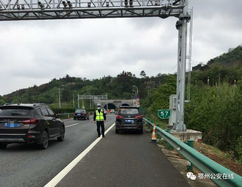 4月11日,中队民警巡逻到葛山隧道附近时,发现一辆小车停在紧急停车道上,车辆后方未设置任何警示标志。中队长张朝带领巡逻人员立即上前查看。