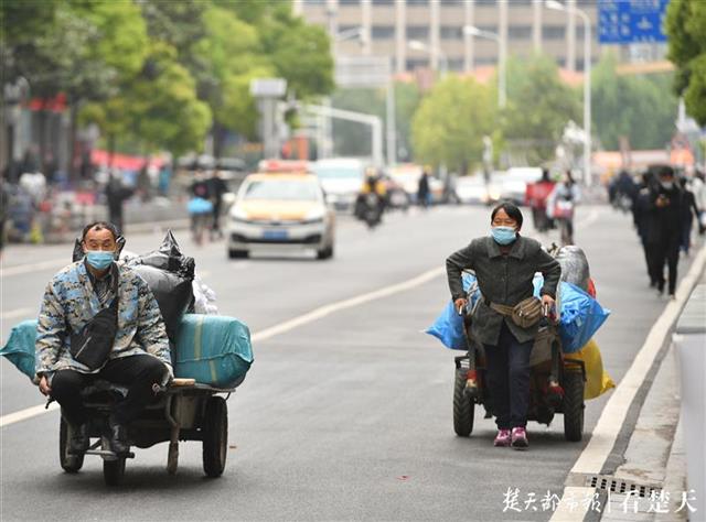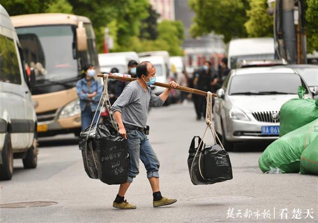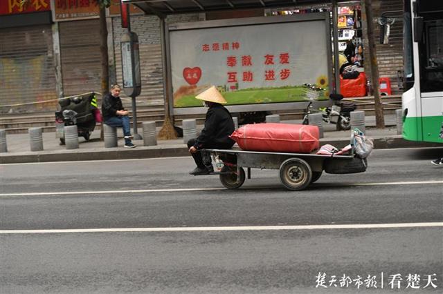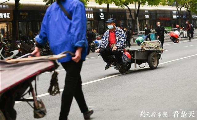 湖北武汉汉正街,扁担、板车回来啦!无论是狭窄的街巷还是宽阔的马路,都有他们拖着货物来回奔忙的身影。他们是汉正街市场生意是否火爆的缩影。