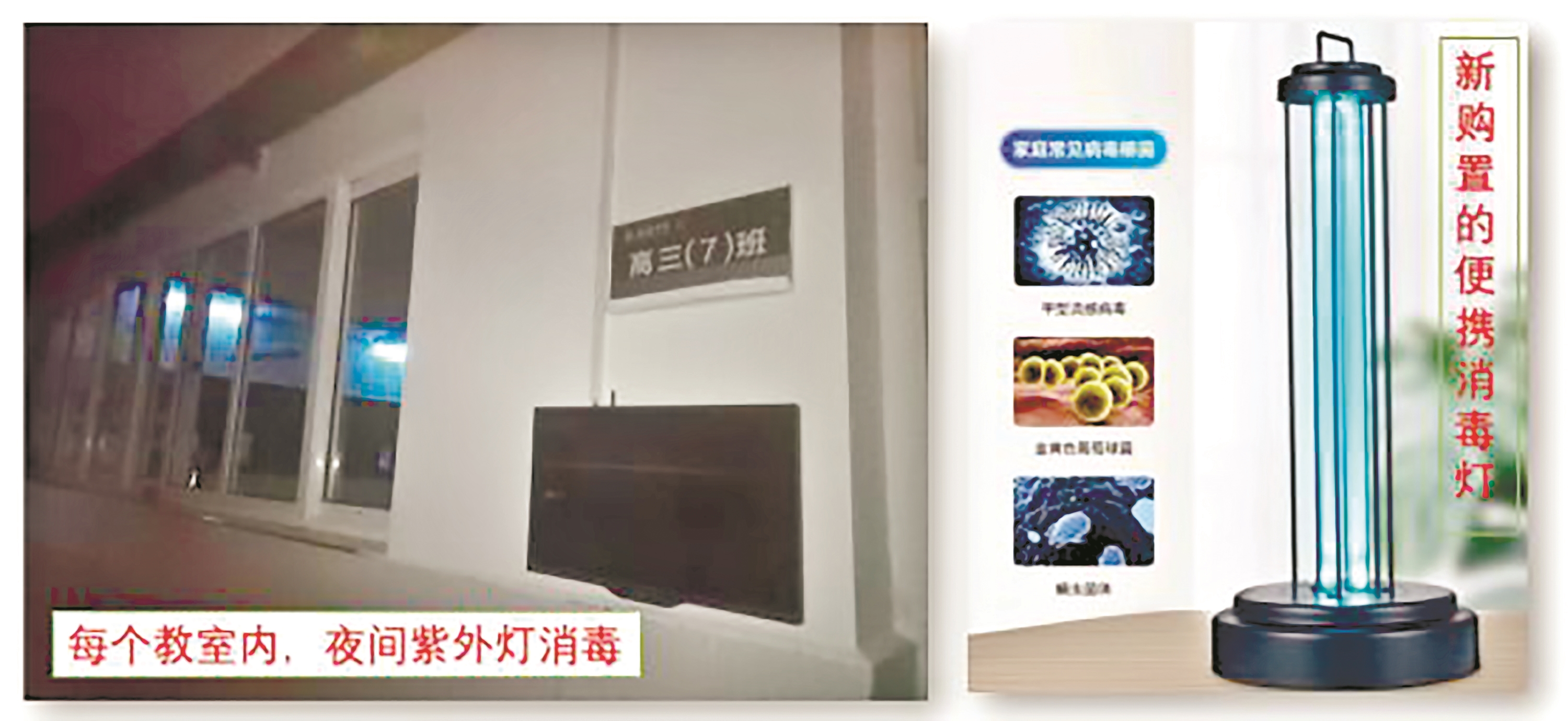 记者探访武汉中学发现,该校学生进教室需要测量三次体温,该校在教室安装了紫外线消毒灯,在走廊摆放了教师一对一答疑课桌。