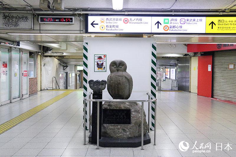 在池袋东口,“猫头鹰”是一个地标雕像,这里成为人们最优先选择的集合地点之一。无论白天还是晚上,雕像周围总站着不少人在等待亲朋好友或拍照留念。现在却见不到一个人。