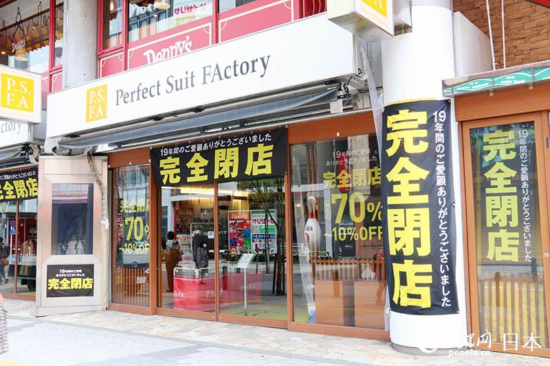 由于日常打折力度很大,疫情来临之前这家西装专卖店每天都会吸引很多上班族,店外也摆满各种促销商品。进出的客人络绎不绝。现在已贴出了“完全闭店”的通知,并向每位顾客表达长达19年来光顾该店的感谢。