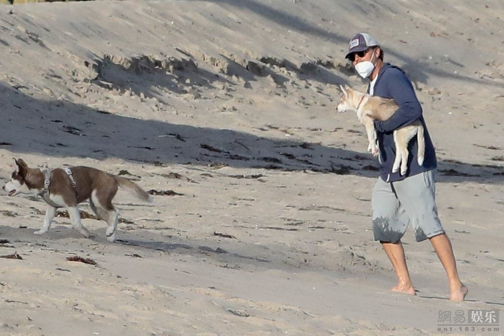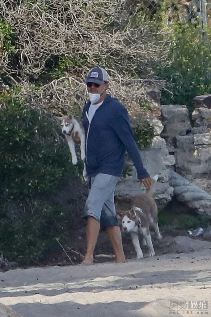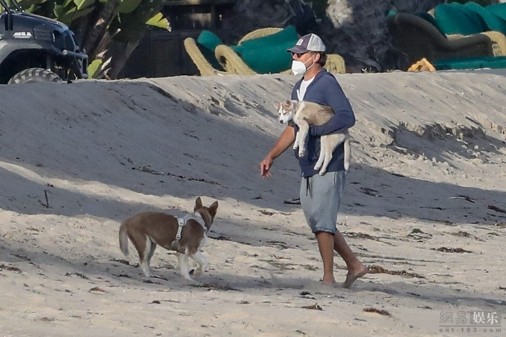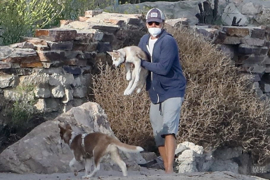 当地时间2020年4月26日,美国马里布,莱昂纳多·迪卡普里奥(Leonardo DiCaprio)现身海滩。他戴棒球帽,一身休闲装扮海滩遛狗,十分接地气。