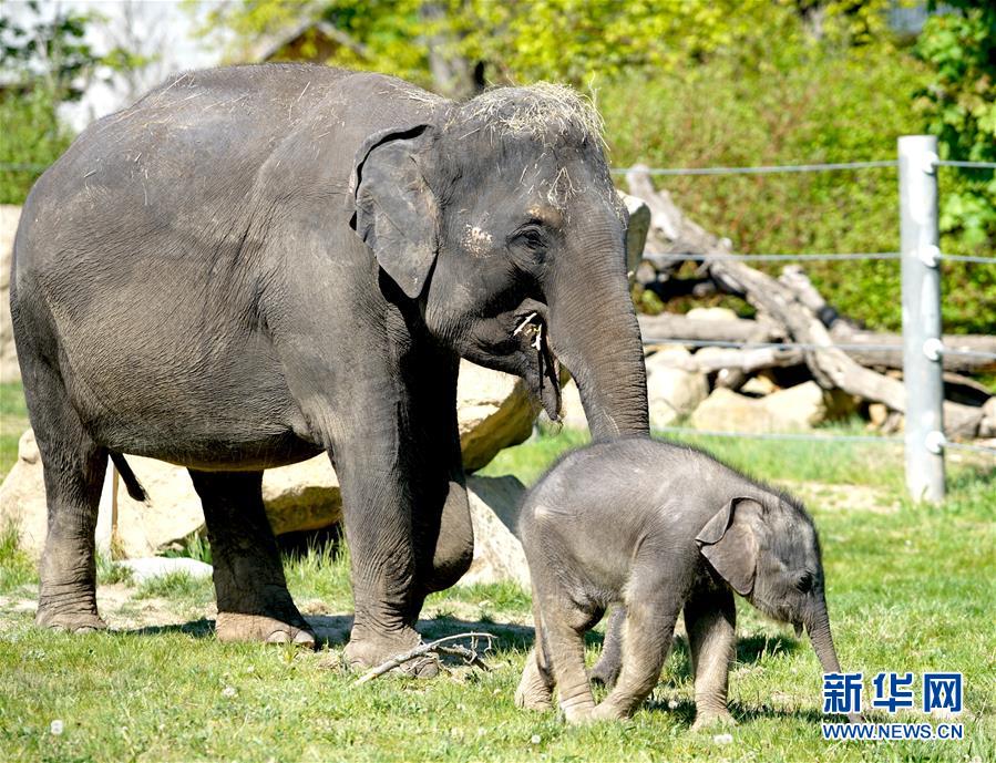 这是4月27日在捷克布拉格动物园拍摄的亚洲象和亚洲象宝宝。新华社发(达娜·科什奈洛娃摄)