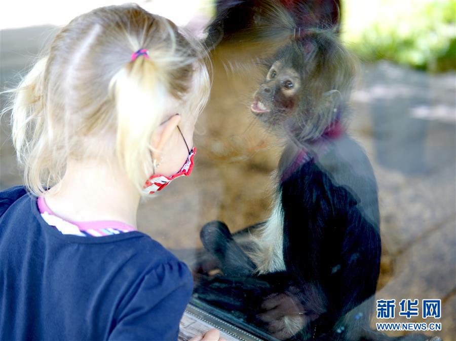 4月27日,一名女孩观看捷克布拉格动物园内的蜘蛛猴。新华社发(达娜·科什奈洛娃摄)