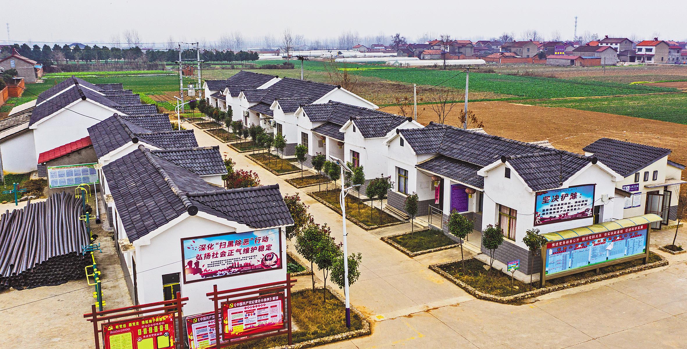 4月23日,当阳市坝陵办事处慈化村易地扶贫搬迁安置点,一排排白墙青瓦、错落有致的农家小院掩映在树木间。