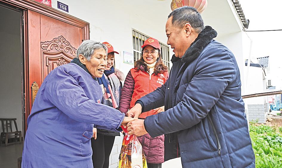 每逢春节,村干部都要将慰问物资送到宋祖贵家。