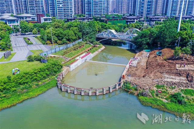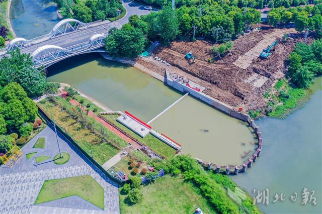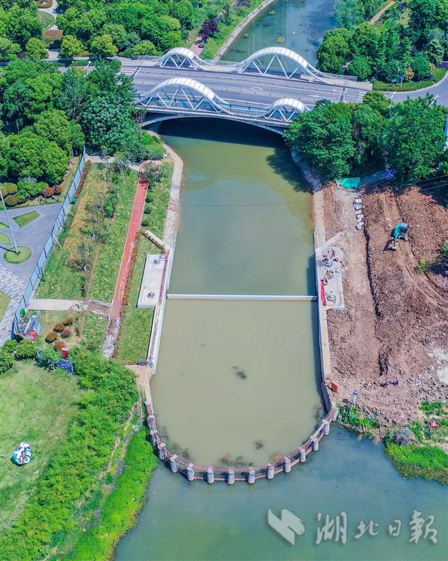 作为武汉市防汛工作的重点工程,新沟渠节制闸项目完工后,为即将到来的汛期做好防汛准备,后期渠道内还将进行疏通,将渠道打造成东湖风景区的又一景观通廊。(湖北日报全媒记者 梅涛 摄)