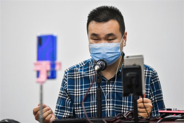 18岁的金虎平是一名盲人,在一家按摩店做按摩师,疫情期间一直在老家荆门休息。从4月20日开始,他的生活回到了学校作息时间——每天上午9点至12点,下午2点至4点半,金虎平都要通过“钉钉“App的直播平台打卡签到,在线学习。