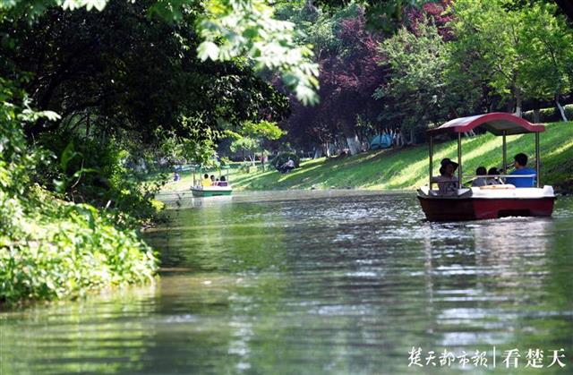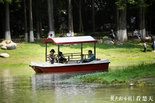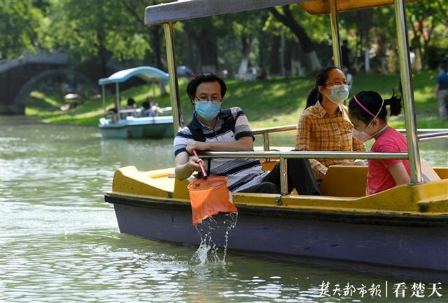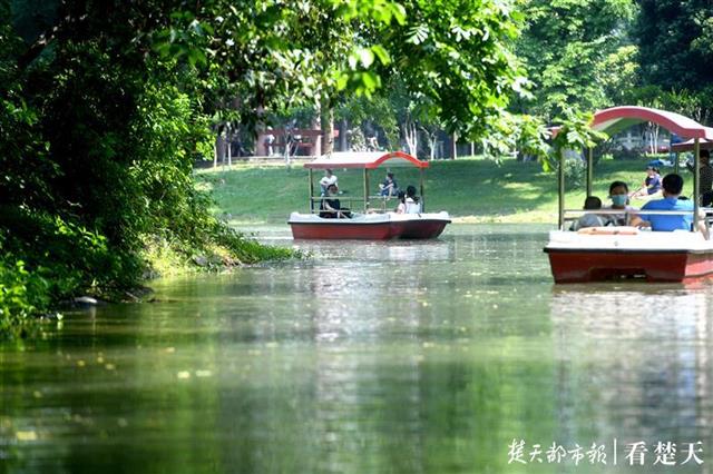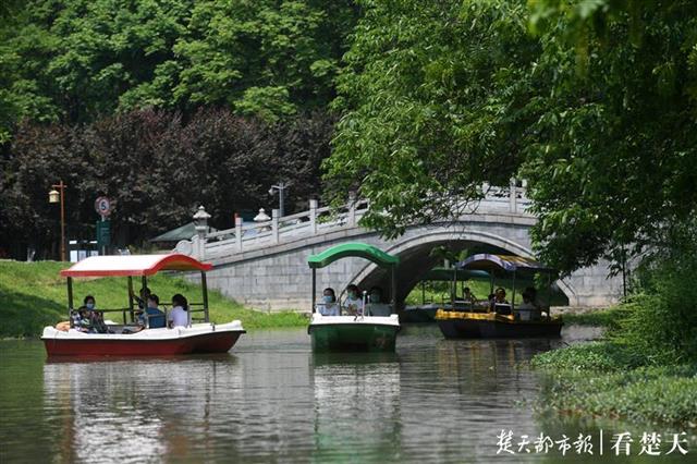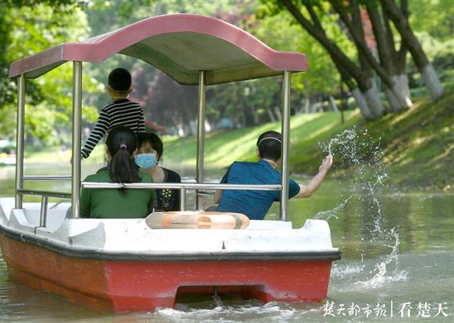 今日,解放公园内,久违的游船畅游在公园内湖。时隔太久,终于再次见到小船推开波浪,载着人们优哉游哉的样子。孩子在船上欢声笑语,大人也时不时用手扬起湖水,人们的脸上带着灿烂的笑容。随着武汉疫情形势的进一步缓解,我们美好的生活正一步步回归正轨。