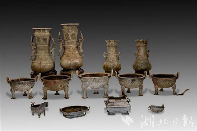 墓地出土铜器2000余件,其中铜礼乐器近600件,有4座曾侯及夫人墓出土不同组合的编钟,共88件:曾公求编钟34件,其中镈钟4件、甬钟17件、钮钟13件;曾侯宝编钟被盗仅存15件,其中镈钟2件、甬钟13件;曾侯得编钟20件,其中镈钟4件、甬钟16件;曾侯宝夫人芈加编钟被盗仅剩钮钟19件。发现铜礼、乐器铭文近6000字,其中曾公求编钟铭文近1150字,单件镈钟铭文达312字,这是新世纪考古发现最大的一批春秋时期金文资料。墓地部分墓葬保存条件较好,在现场文物保护手段的支持下,较为完好的清理出棺椁、漆器及兵器杆柄等有机质文物。