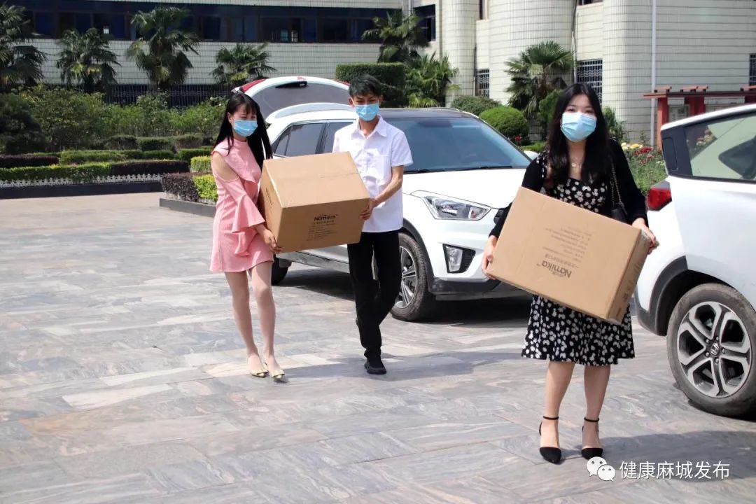 武汉镭舟追梦文化传播有限公司董事长、武汉市江夏区街舞协会主席朱兴镭在得知情况后,迅速联合本地一些爱心人士,麻城乔丹体育叶金平先生、麻城天宇篮球俱乐部会长刘钊先生、麻城尚沃教育刘成女士及麻城舞韵舞蹈何蕾女士一起在麻城市顶针科技投资有限公司自费购买了13000只口罩,其中麻城乔丹体育店捐赠了5000只口罩,武汉镭舟追梦文化传播有限公司、麻城天宇篮球俱乐部、麻城舞韵舞蹈培训中心、麻城尚沃教育各捐赠2000只口罩。此次捐赠的口罩主要用于即将提前开学复学的麻城市第一中学高三学子及毕业班教职工,口罩将陆续分配到该校毕业班各班级。