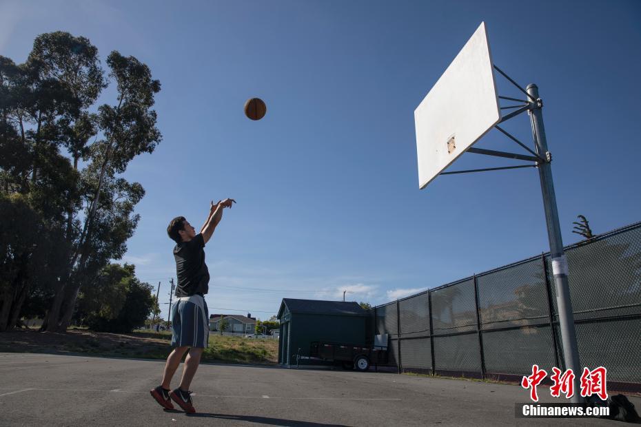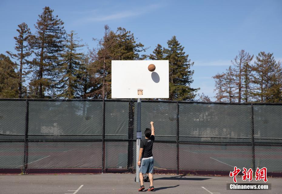 - 当地时间5月7日,一位篮球爱好者独自在美国北加州旧金山湾区米尔斯高中的篮球场打篮球。为阻止人们在新冠肺炎暴发期间聚众打篮球,这所学校拆除了校园内所有篮球框。 中新社记者 刘关关 摄