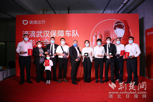 荆楚网客户端-荆楚网消息(记者郭金富 通讯员刘文文)5月8日上午,在滴滴驾驶员培训中心,滴滴武汉保障车队表彰大会顺利举行。10位滴滴出行司机,代表1600余位共同战斗在战“疫”一线的伙伴们接过“抗疫先锋”荣誉证书。