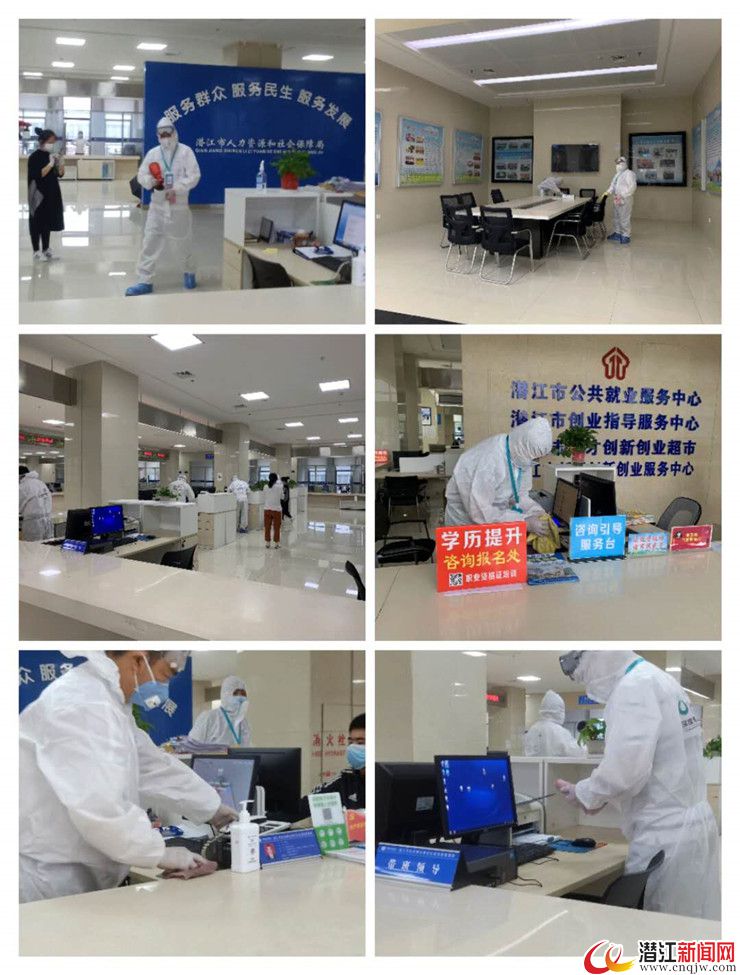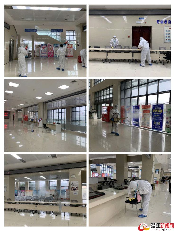 清洁消毒人员对市公共就业创业服务大厅进行全面清洁消毒。