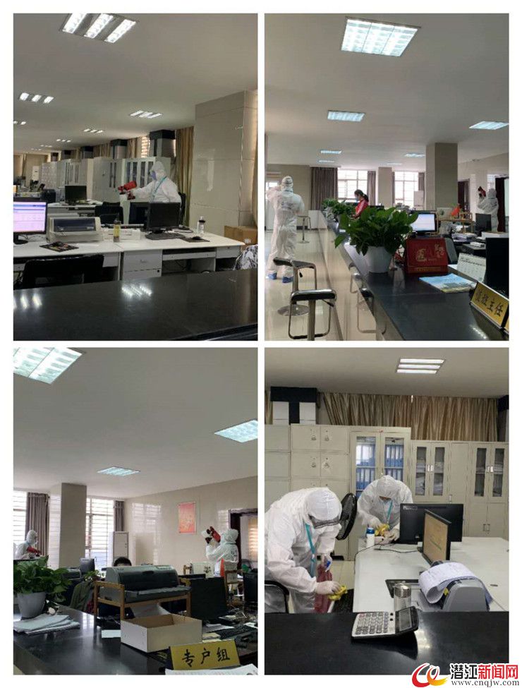 清洁消毒人员对市政务服务大厅办公区域进行全面清洁消毒。
