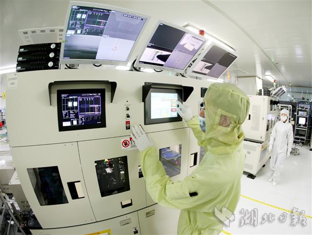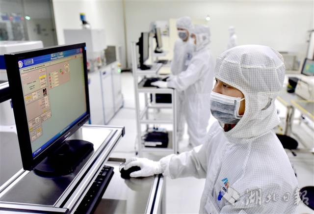 5月7日,武汉光安伦光电技术有限公司(葛店开发区)技术人员在无尘恒温车间生产光电子芯片。