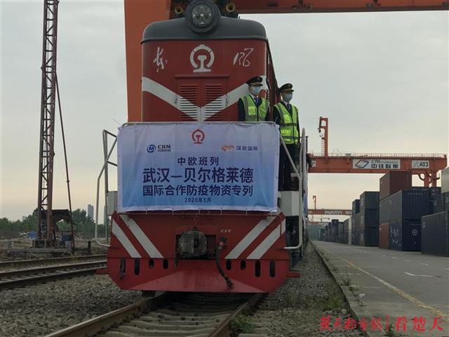 楚天都市报记者在现场看到,此次装载国际合作防疫物资的中欧班列专列,将从阿拉山口出境,预计18天后抵达贝尔格莱德。