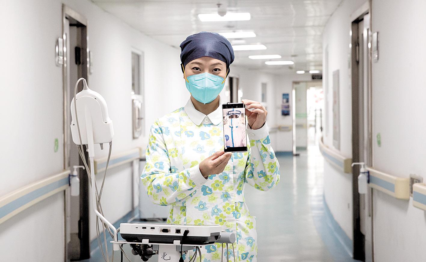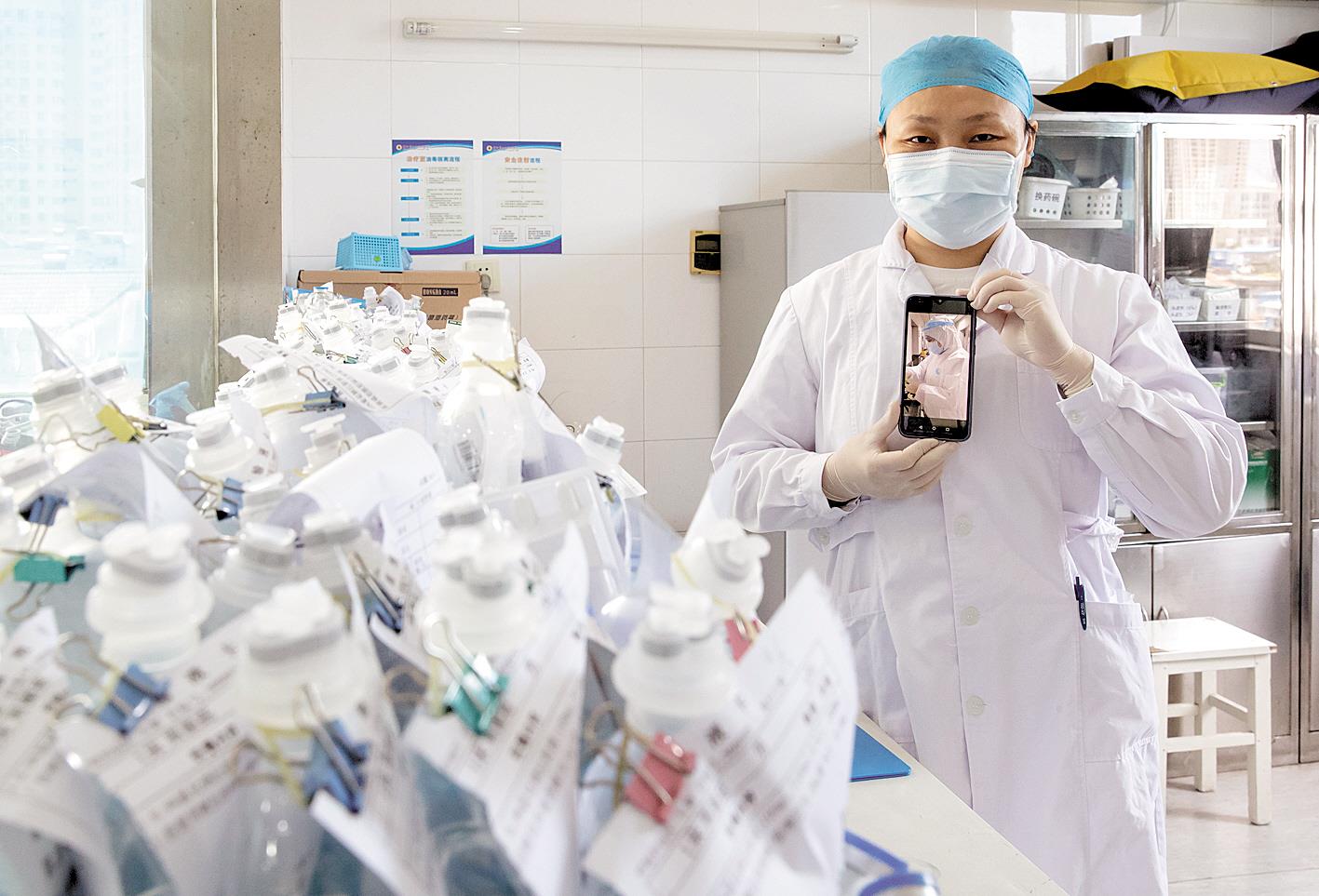 武汉市中医医院肺系病科90后护士袁莲。(湖北日报全媒记者 蔡俊 摄)