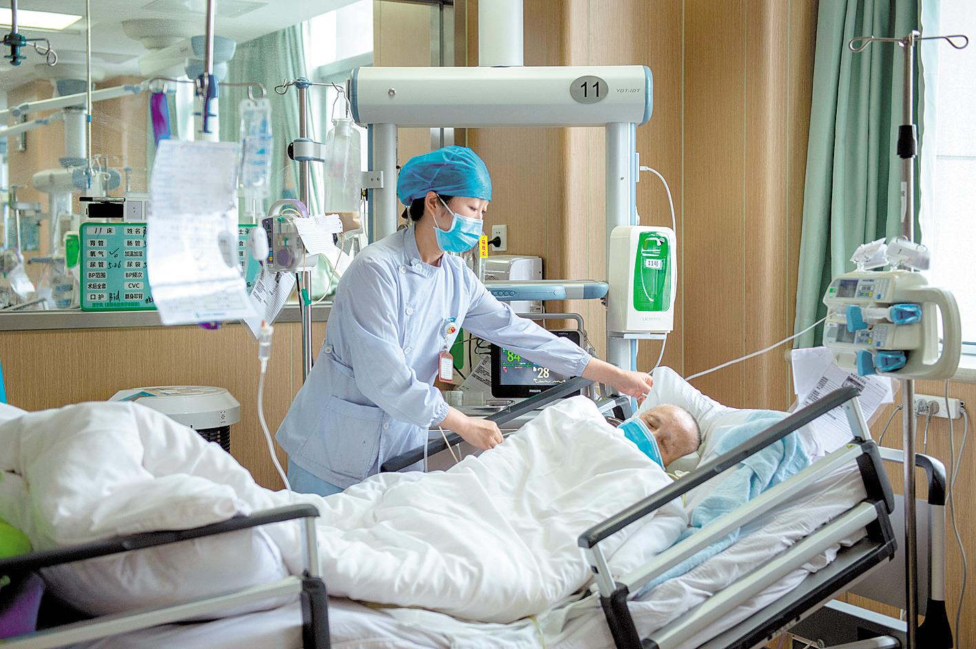 5月9日,武汉市第一医院NCU护士龙媛熙正在照顾患者。(湖北日报全媒记者 蔡俊 摄)